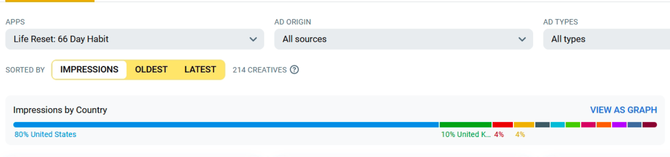 Android used to have zero paid acquisition. Now, judging by the number of creatives, it's becoming their main platform (and 12K for the last 30 days).