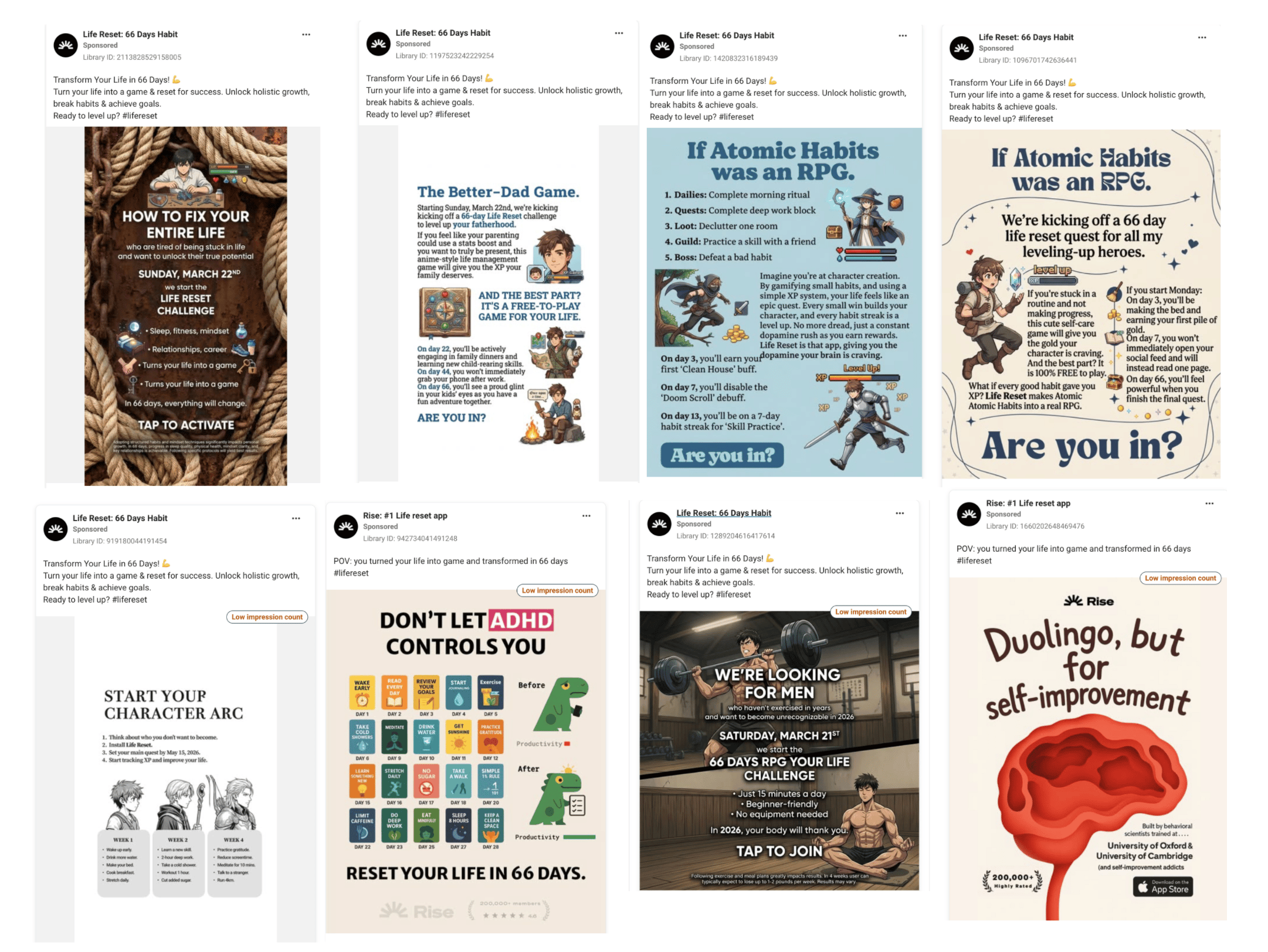 The more creatives you test, the better your chances of finding winners. Life Reset proves it both ways: